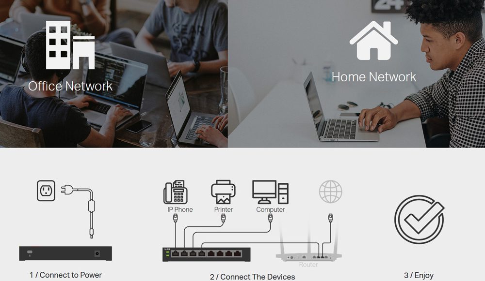 The TL-SG105E 5-Port Gigabit Easy Smart switch is an ideal upgrade from an unmanaged switch, designed for Small and Medium Business networks that require simple network management. Network administrators can effectively monitor traffic via Port Mirroring, Loop Prevention and Cable Diagnostics features. To optimize traffic on your business network, TL-SG105E offers Port-based/802.1p/DSCP QoS2 to keep latency-sensitive traffic moving smoothly and jitter-free. Additionally, port-based, tag-based and MTU VLAN can improve security and meet more network segmentation requirements. Moreover, with its innovative energy-efficient technology, the TL-SG105E can save up to 57% of power consumption, making it an eco-friendly solution for your business network.